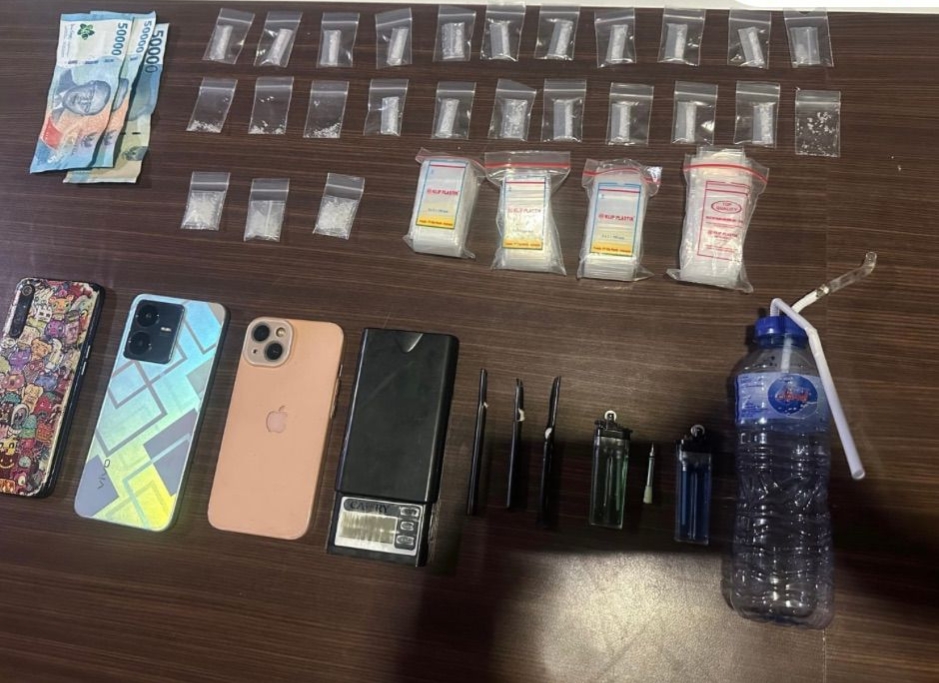 Dari hasil penggeledahan, petugas menemukan 25 sachet plastik berisi kristal bening yang diduga sabu, terdiri dari tiga sachet berukuran sedang dan 22 sachet kecil. Selain itu, turut diamankan dua unit ponsel Android, satu unit iPhone, satu timbangan digital, alat isap (bong) lengkap dengan kaca pirex, uang tunai Rp150.000 hasil penjualan sabu, serta beberapa pack plastik kosong dan pipet.